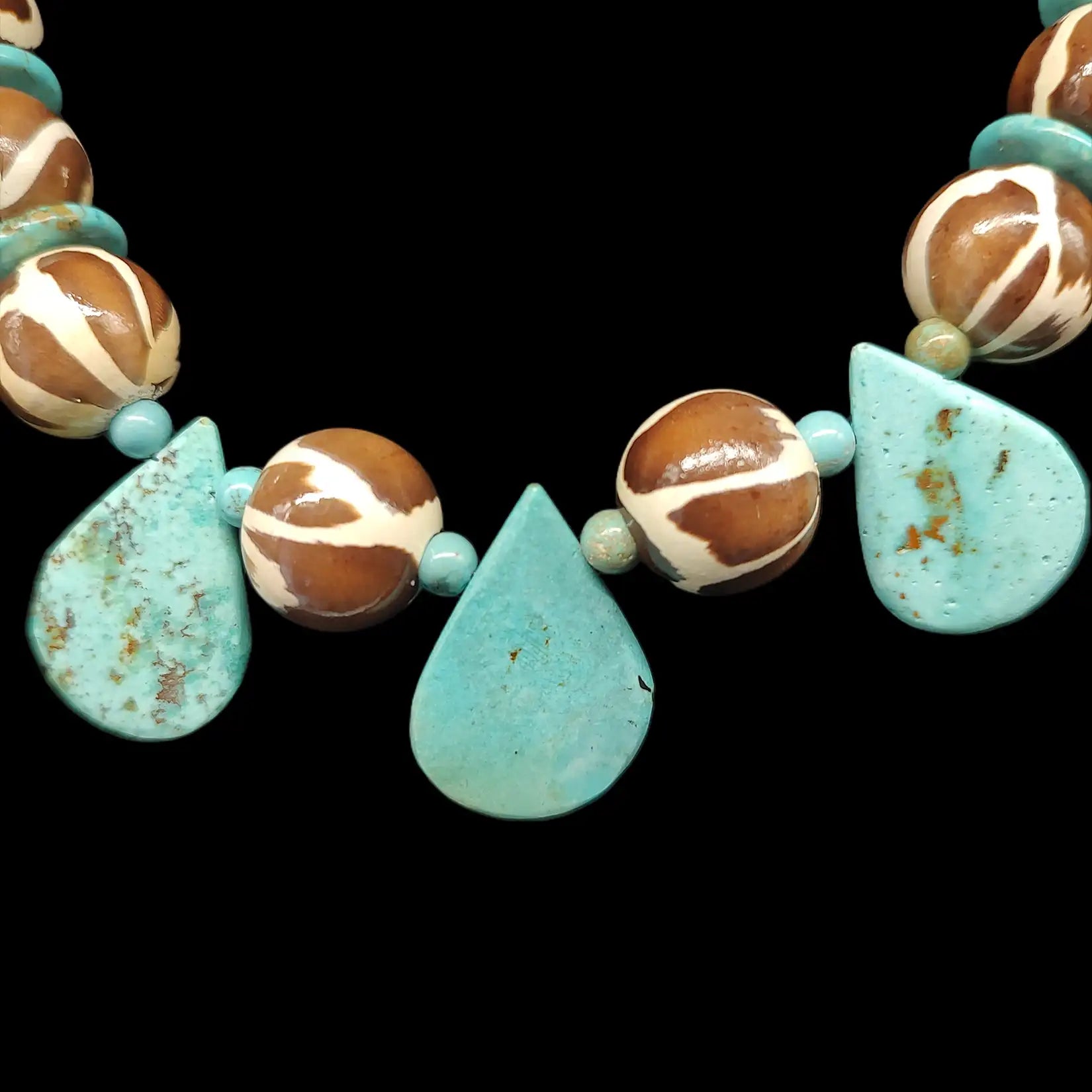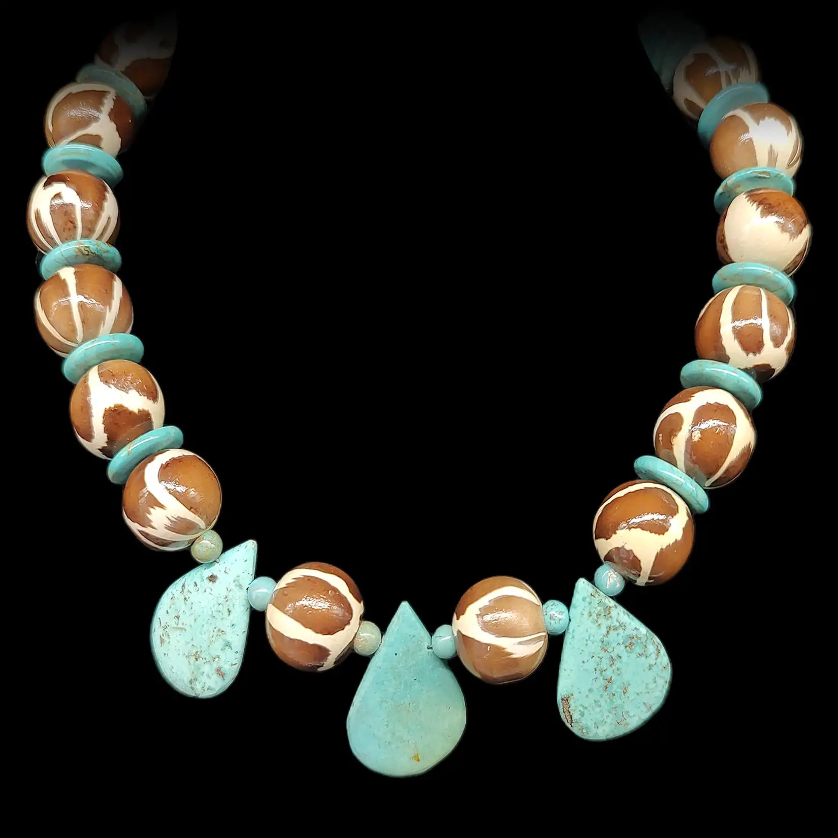 Howlite Beads and Stone, Painted Wooden Beads, Silver Beads, Silver Clasp. 16 inches.