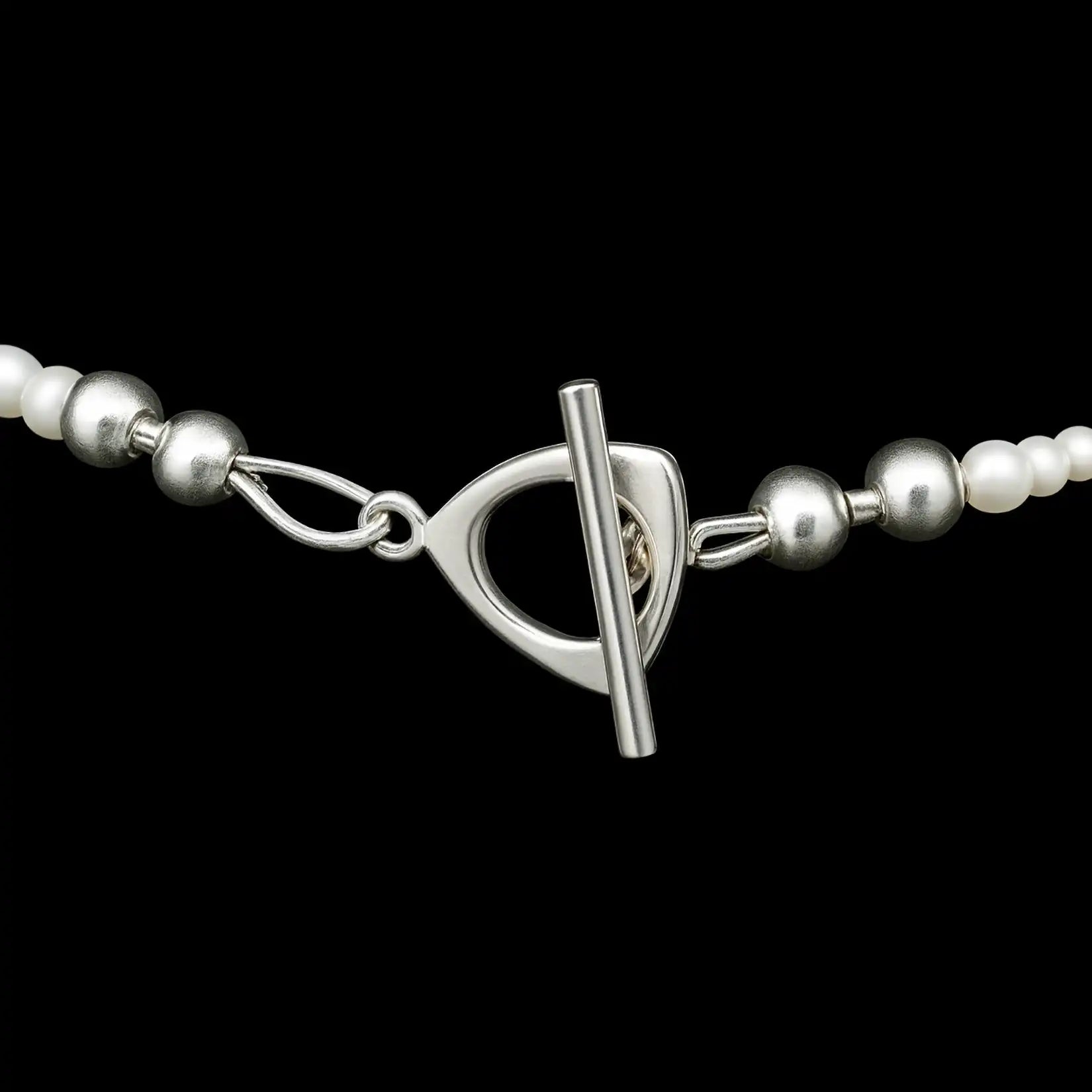 Larimer Drop Bound in Sterling Silver, Larimer Beads, Silver Beads, Sterling Silver Clasp. 19 inches.
